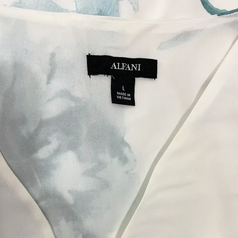 Add a touch of sophistication to your wardrobe with this beautiful Alfani blouse. The crisp white backdrop showcases stunning watercolor-style florals in gorgeous shades of teal, turquoise, and soft blue that create an artistic, painterly effect. The flattering V-neckline elongates the silhouette, while the long sleeves feature delicate gathered cuffs and subtle shoulder gathering for a feminine touch. The lightweight, fully lined polyester fabric drapes beautifully and moves gracefully with you. Perfect for the office, special occasions, or elevated everyday wear. Pair with dress pants for work or tuck into a skirt for a more dressed-up vibe. This piece is new with tags but may show minimal signs of store try-ons.