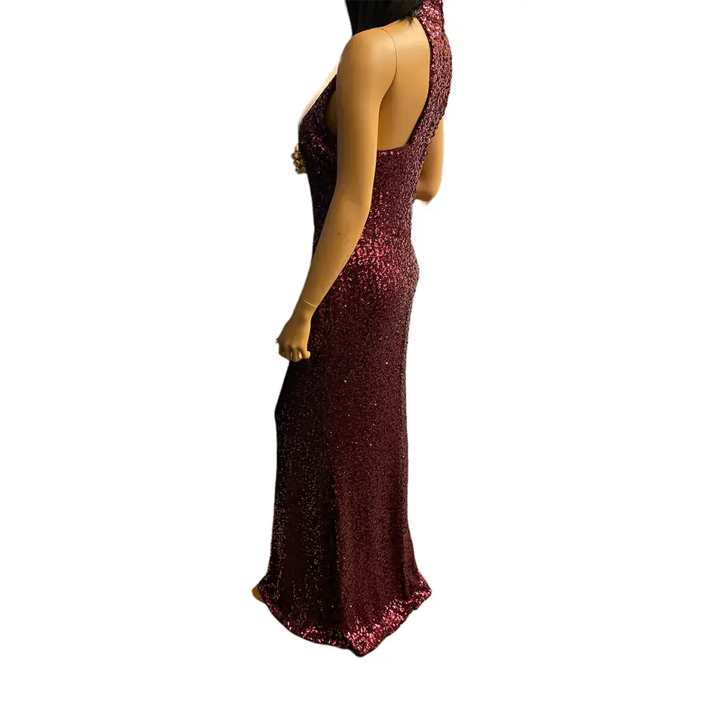 Aqua Burgundy Sequin Halter Neck Evening Gown