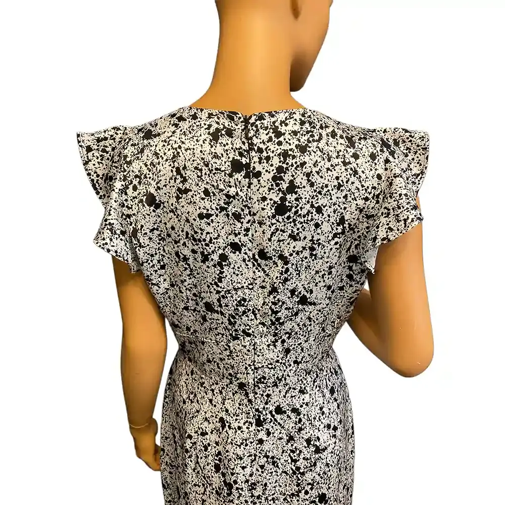 Bar III Black White Splatter Print Flutter Sleeve Dress