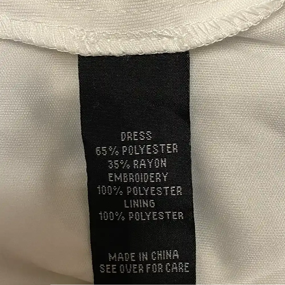 Dress: 65% polyester, 35% rayon