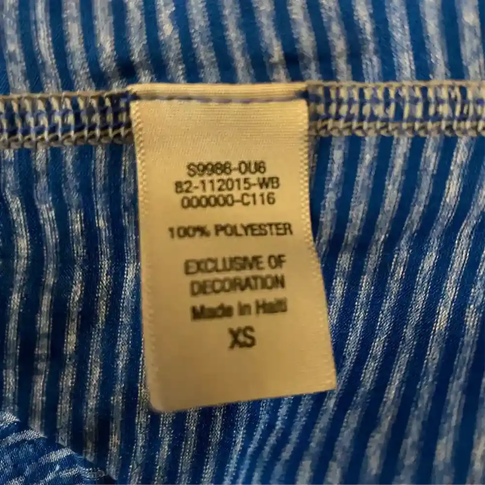 This C9 Champion short sleeve top keeps her cool and comfortable for practice, play, or everyday wear. The soft knit features narrow blue and white stripes with a scoop neckline and a stylish open back cutout that adds extra airflow. DuoDry fabric helps wick moisture so she stays dry while moving. Finished in a classic hip length that pairs easily with leggings, shorts, or joggers. Pre owned and in great condition.