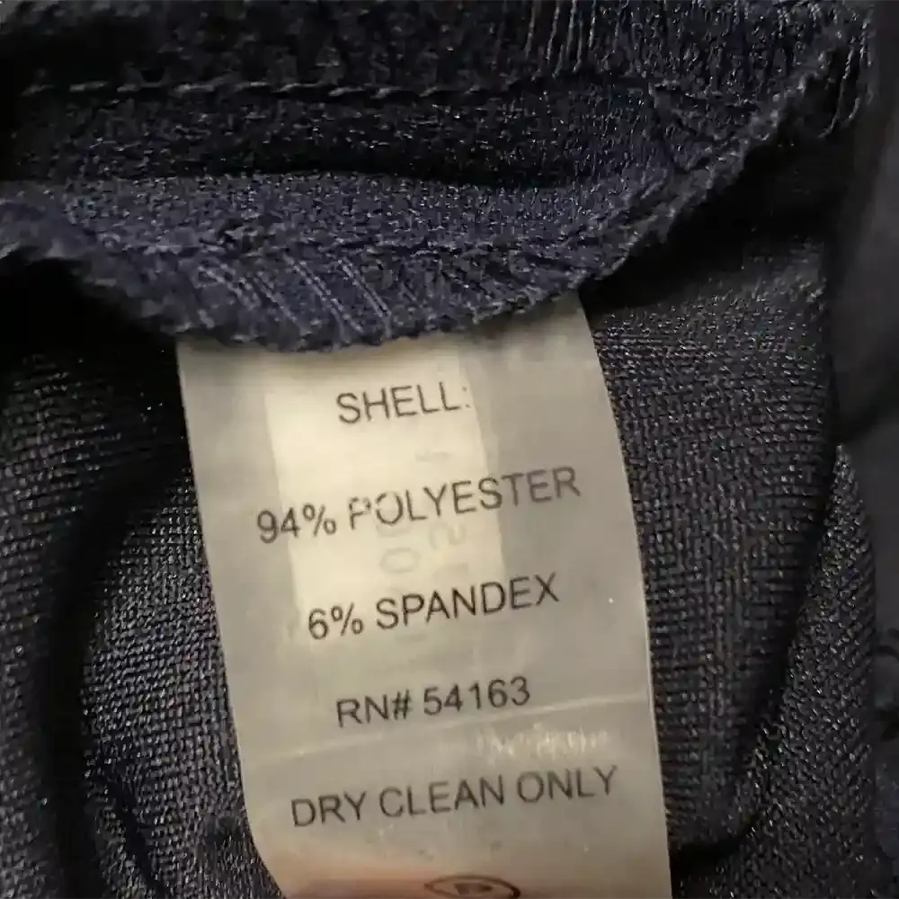 - Shell: 94% polyester and 6% spandex