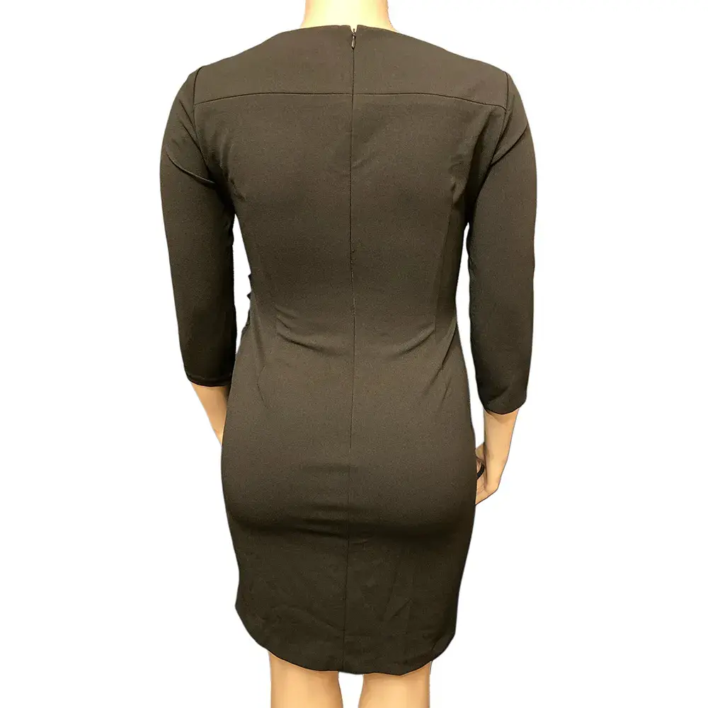 The dress is designed to hit around the knee with a close but comfortable fit. It works well with heels for the office or dressy events, and can be layered with a blazer or wrap when the weather is cooler. Tag is still attached and the dress may show light signs of store handling or try on.
