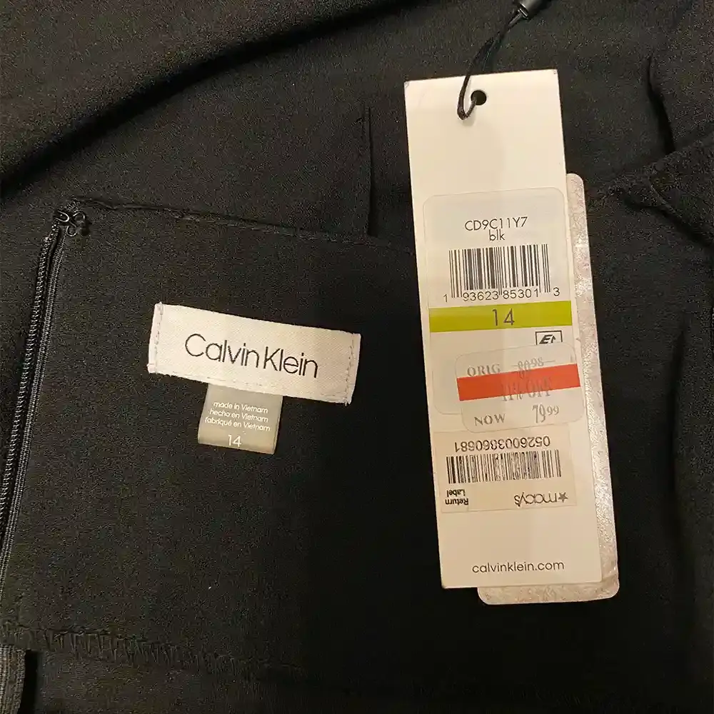 This Calvin Klein black sheath dress brings clean lines and subtle structure to your closet. The jewel neckline and 3/4 sleeves keep the look refined, while the soft pleated detail along the side creates a slimming effect through the waist and hip. The back zipper makes it easy to slip on and off, and the stretch knit fabric moves comfortably with you.