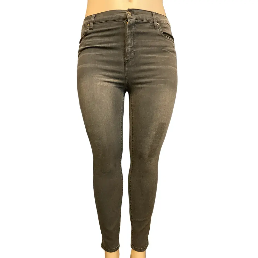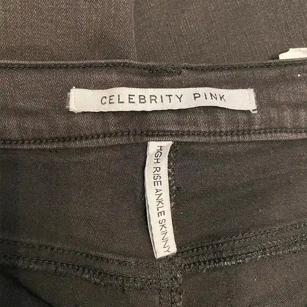 These Celebrity Pink high rise skinny jeans deliver everyday style with a flattering fit. The dark tide wash offers a neutral gray tone that pairs easily with any top in your closet. Subtle whisker detailing at the thighs adds visual interest without being overdone. The high rise waist sits comfortably and provides a smoothing effect while the skinny leg tapers down to a narrow ankle opening. Stretch blend fabric moves with you throughout the day while holding its shape. Five pocket styling with zip fly and button closure. Belt loops allow for accessorizing. The ankle length works great with sneakers, flats, or heels. A reliable wardrobe staple for casual outings, errands, or relaxed weekends.