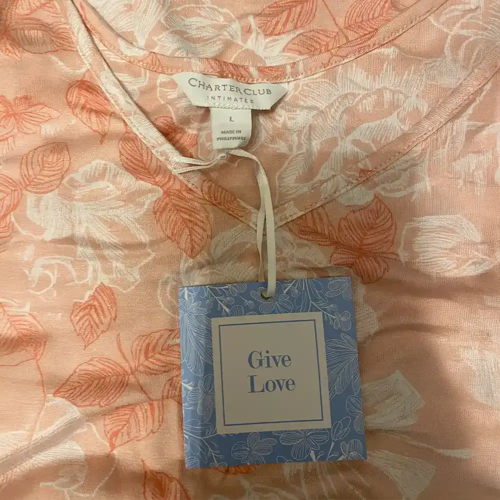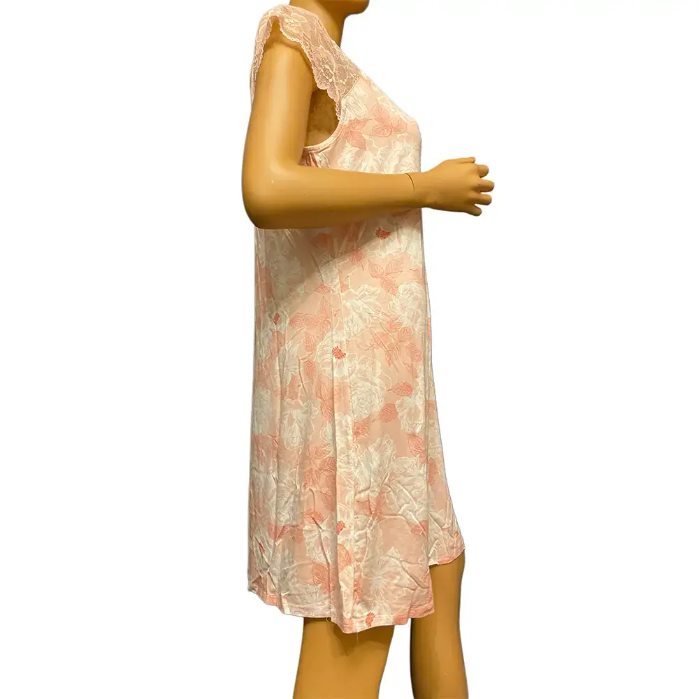 This Charter Club Intimates chemise is the perfect blend of comfort and charm. The delicate sketched floral print in shades of pink and white creates a soft, romantic look. Feminine lace cap sleeves add a pretty touch while the V neckline keeps it classic. The relaxed A line silhouette hits above the knee for easy movement. Stretchy rayon blend fabric feels lightweight and smooth against the skin. Pullover styling for effortless wear. New with tags, never worn.