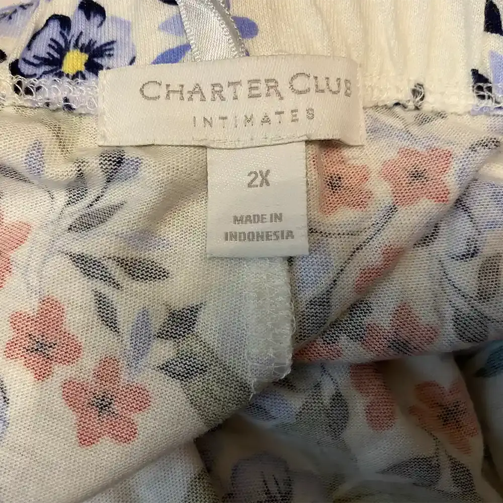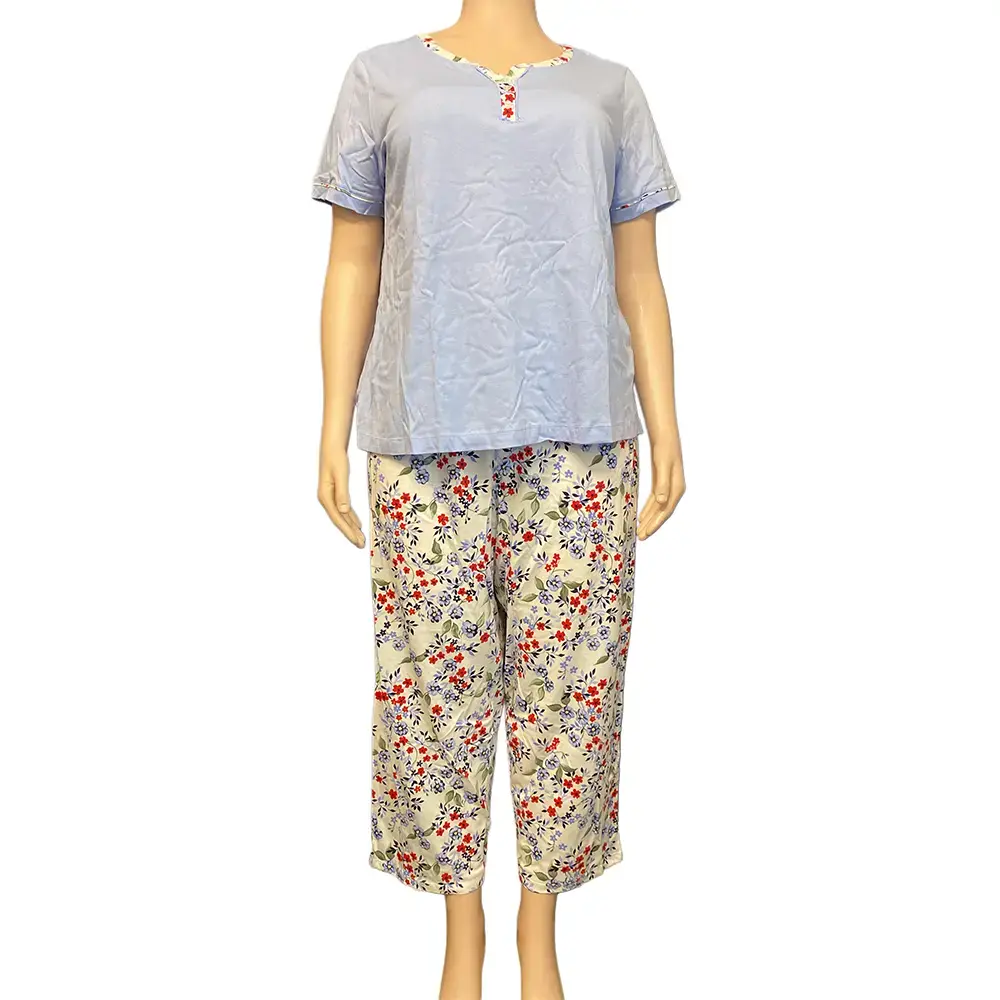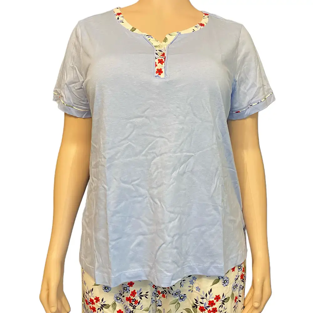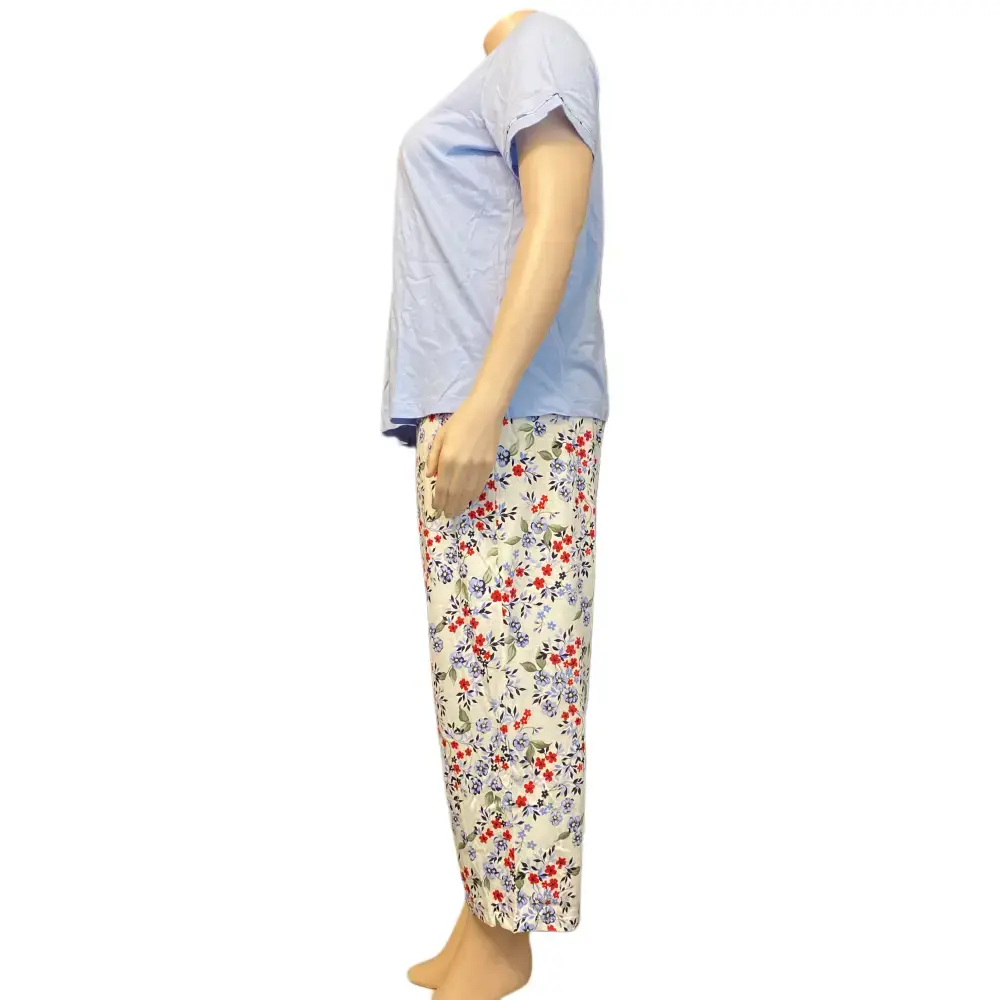 Soft Charter Club cotton pajama set with light blue short sleeve top and floral capri pants. Easy pull on style in breathable 100% cotton. New with tags.