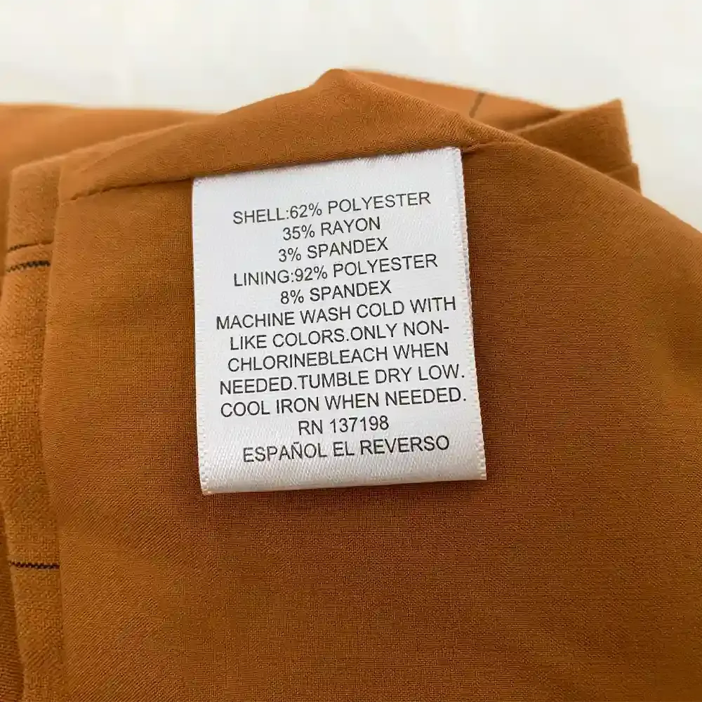 - Shell: 62% Polyester, 35% Rayon, 3% Spandex