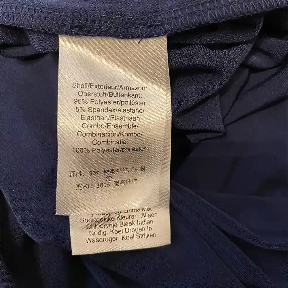 - Shell: 95% Polyester, 5% Spandex