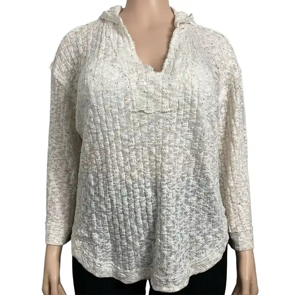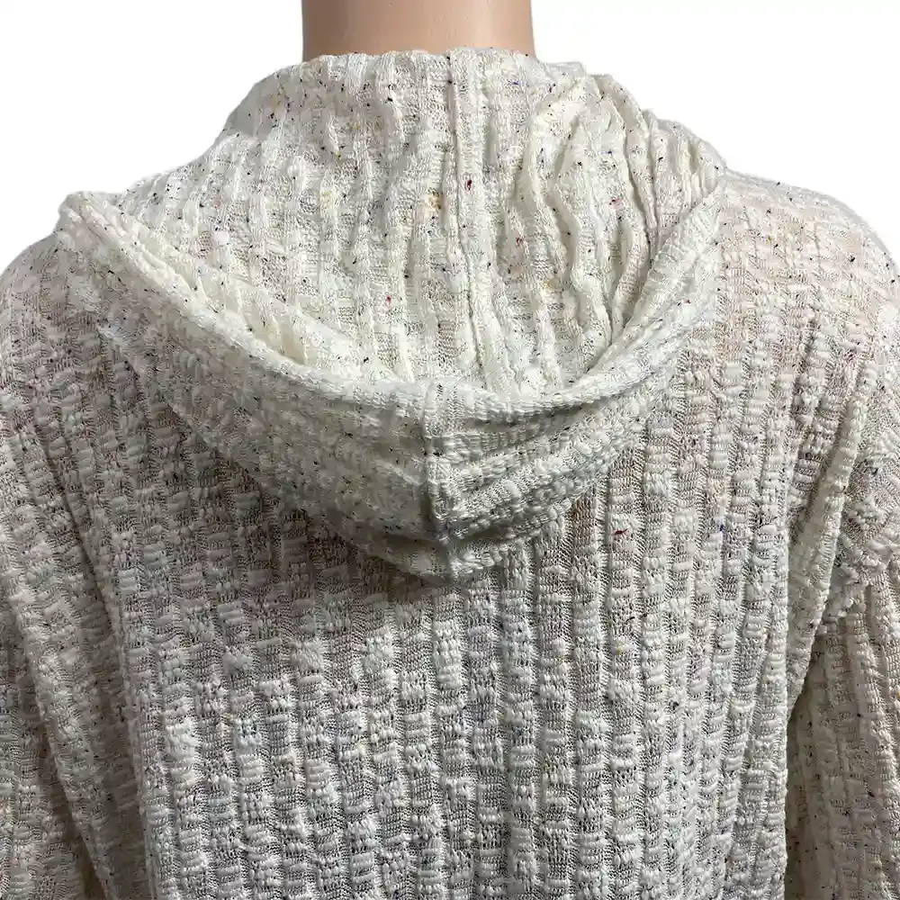 Embrace laid-back bohemian style with this charming Free People Baja Babe oversized hoodie sweater. Crafted in a lightweight hacci knit, this cream-colored beauty is adorned with vibrant confetti-like speckles in pink, blue, yellow, and other cheerful hues that add a playful, artistic touch. The relaxed, oversized silhouette drapes beautifully for an easygoing vibe, while the cozy hood with drawstring and V-neckline opening create the perfect casual-cool aesthetic. The soft, breathable fabric makes this ideal for layering or wearing solo during transitional seasons. Whether you're headed to a festival, weekend brunch, or just living that free-spirited lifestyle, this sweater delivers signature Free People charm. New with tag and ready to add some bohemian magic to your wardrobe.