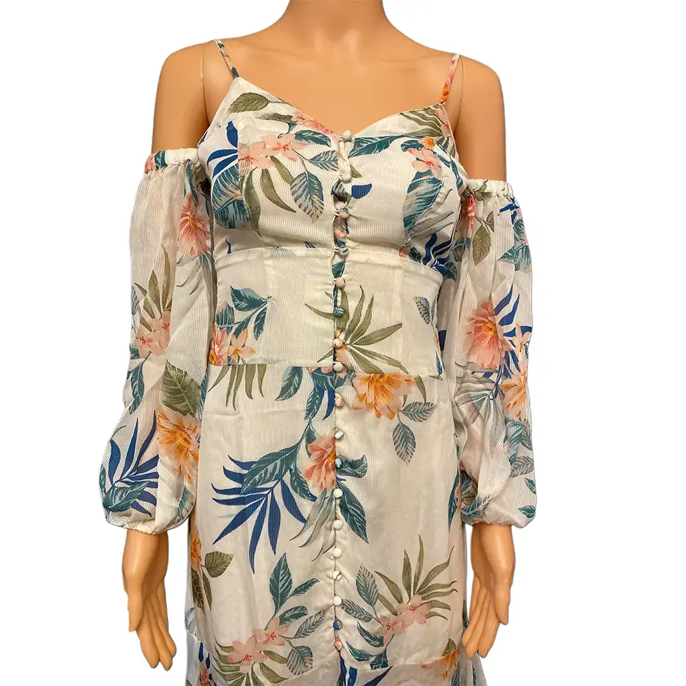 - Color: Cream with tropical floral print