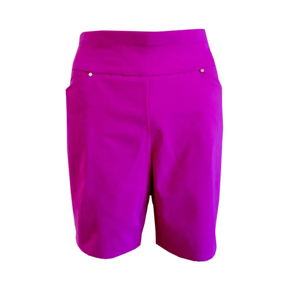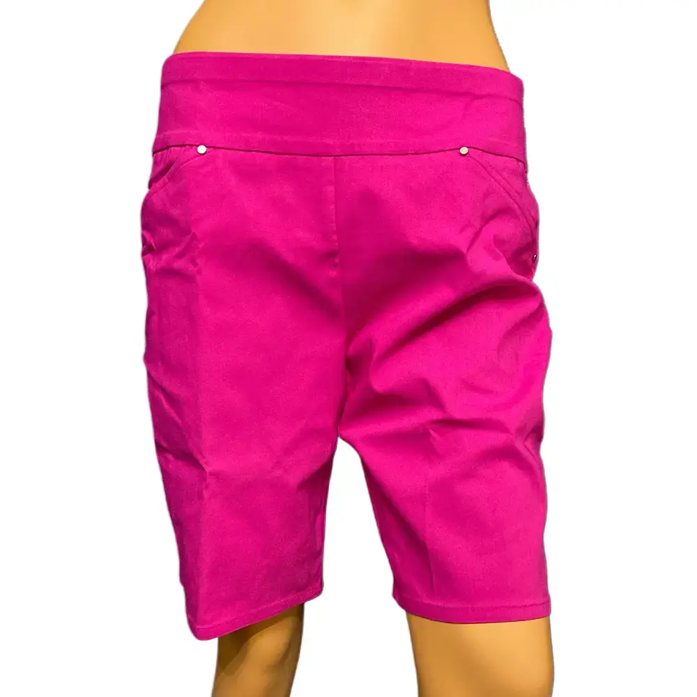 These INC International Concepts bermuda shorts make a bold statement in eye catching fuchsia pink. The pull on design features a wide comfortable waistband and stretchy fabric for easy all day wear. Front slant pockets with silver stud accents add subtle detail. Side hem vents with button trim allow for extra movement. Mid rise, regular fit that's tailored through the hip and thigh. New with tags, never worn.