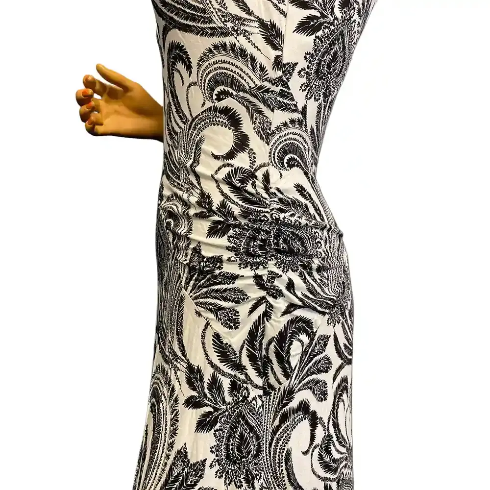 Stunning sleeveless maxi dress from INC featuring bold black and white paisley print throughout. Form-fitting column silhouette with scoop neckline front and back. Brand new with tags.