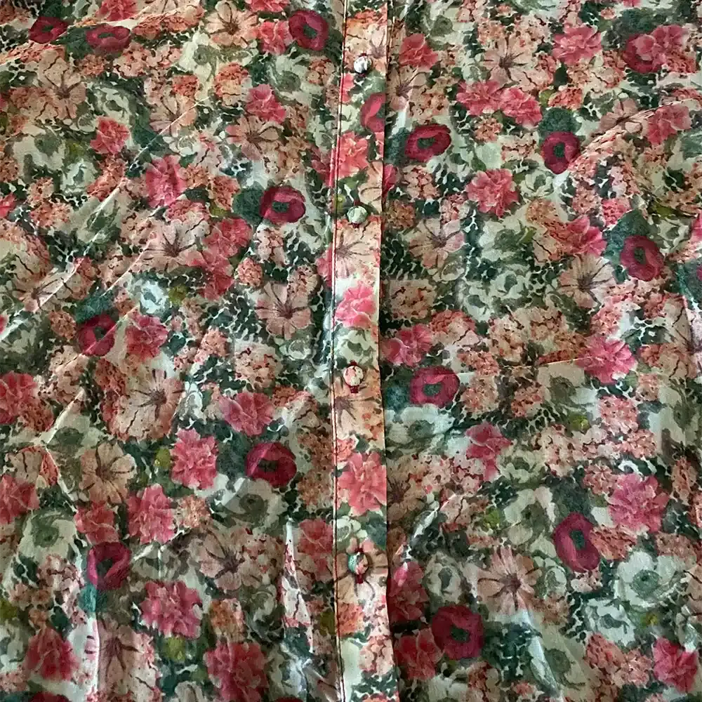 The lightweight polyester drapes nicely and doesn't wrinkle easily, making it a good option for work or going out. The floral pattern is dense enough to be interesting but not so busy that it overwhelms. You can wear this with jeans for a casual look or tuck it into trousers for something more polished.