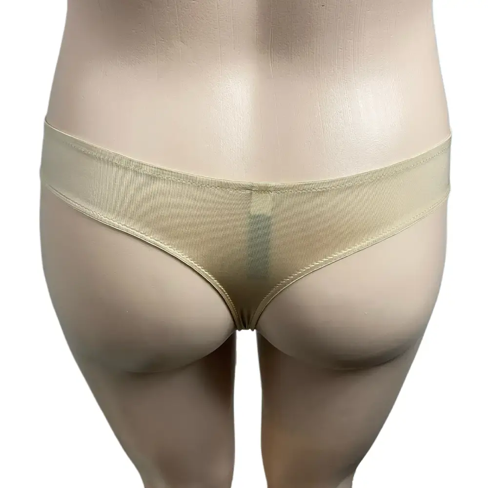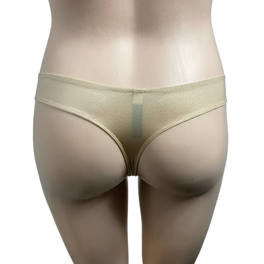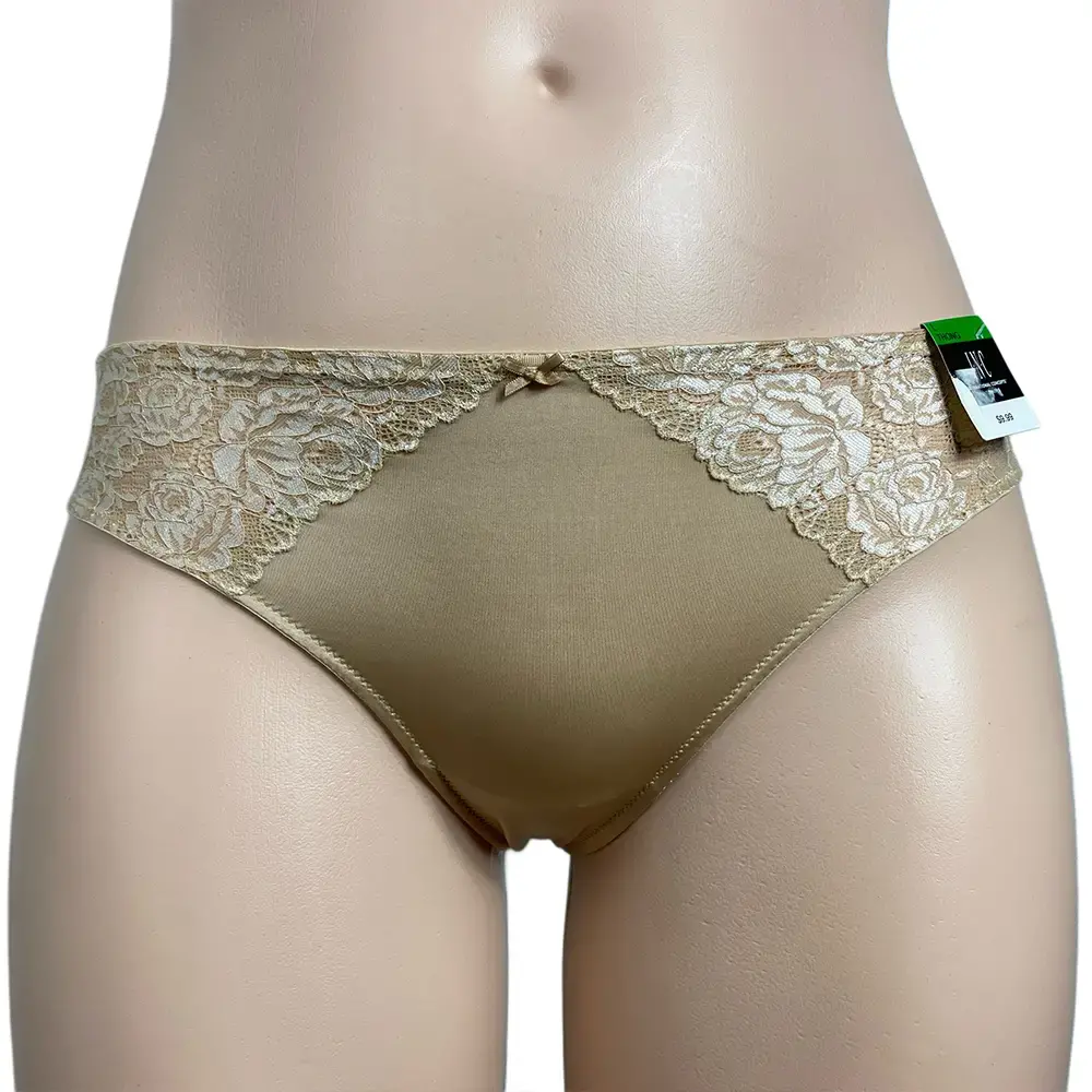 Add warmth and sophistication to your intimate apparel collection with this INC International Concepts frappe thong. The front features a smooth, seamless nylon construction while the sides showcase beautiful decorative lace detailing. The thong silhouette provides minimal coverage for a sleek and seamless look under clothing. The warm frappe color is flattering and versatile. The nylon and spandex blend creates a stretchy, comfortable fabric that moves with your body. This is a reliable piece that works perfectly in your rotation of everyday intimate wear. The lace accents add just the right amount of elegance and sophistication. New with the original tag still attached.