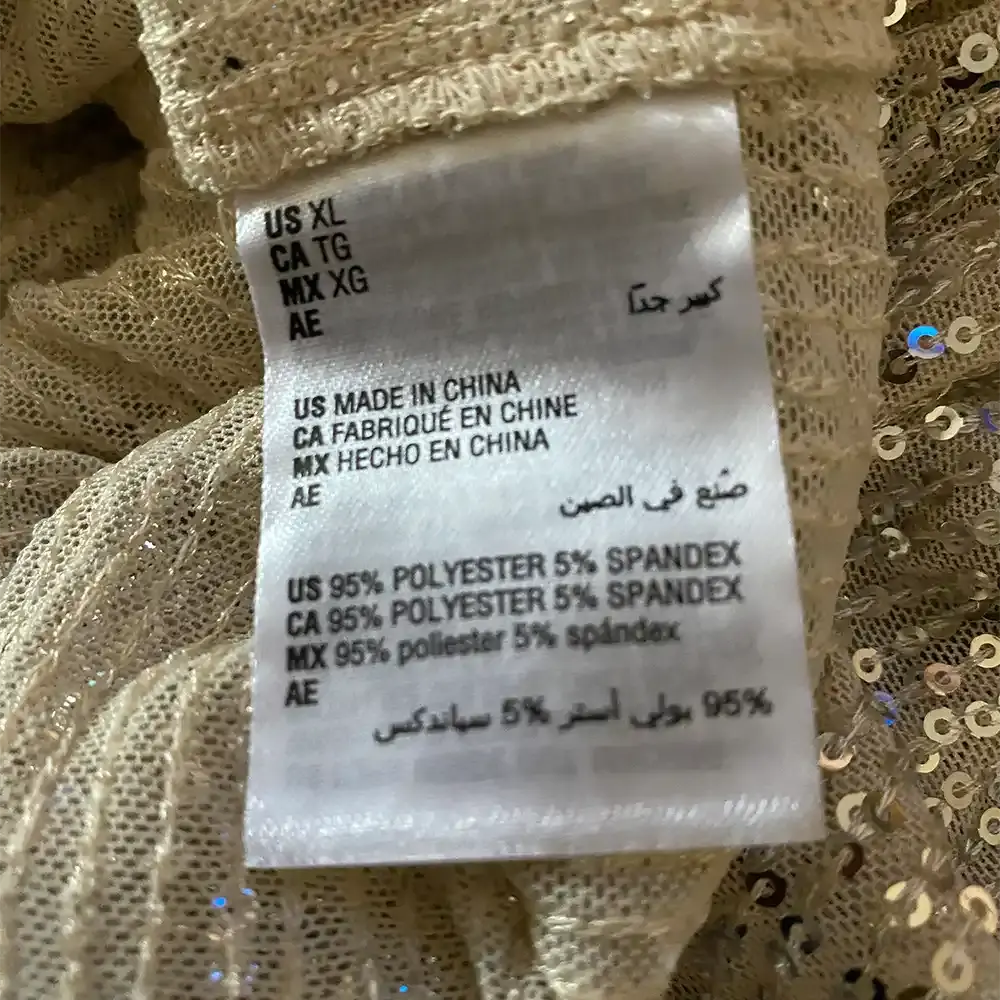 - Color: Silver sequins on champagne/cream base