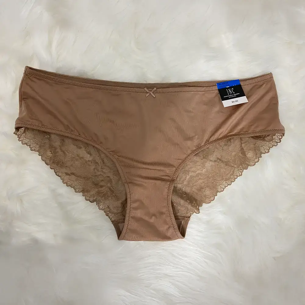 Add sophistication to your everyday intimates with this INC International Concepts taupe lace back hipster. The front features a smooth, seamless nylon construction in a soft taupe tone that complements all skin tones. The back showcases delicate decorative lace detailing with a charming crossover waist accent, adding just the right amount of elegance. The hipster silhouette provides full coverage with a flattering, smooth fit. The nylon and spandex blend creates a stretchy, breathable fabric that feels wonderful against your skin. This is a reliable piece that works perfectly in your rotation of everyday intimate apparel. New with the original tag still attached.