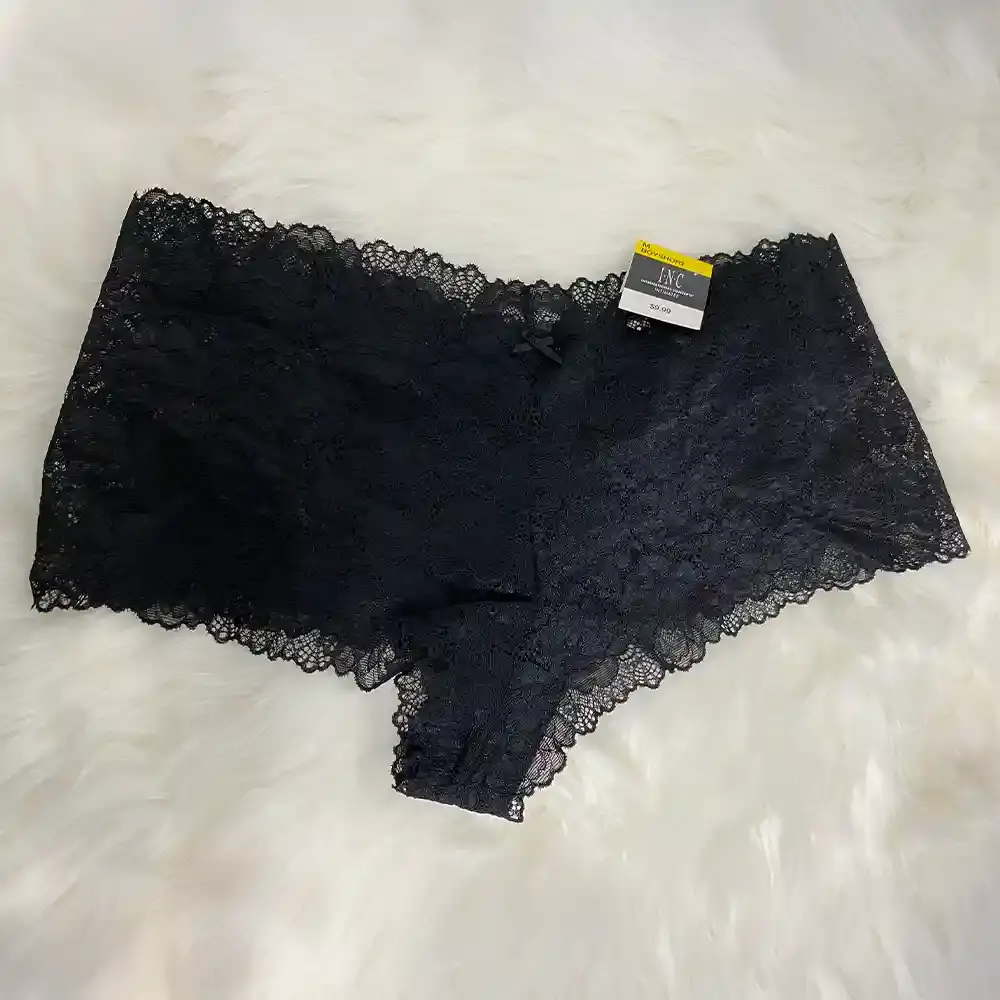 Discover comfort and style with this INC Intimates black boy short. The entire garment is crafted from delicate floral lace, offering a feminine and elegant look while maintaining everyday practicality. The boy short silhouette provides fuller coverage than briefs while still offering a smooth, flattering fit. The timeless black color is versatile and works with any outfit. The nylon and rayon blend creates a stretchy, breathable fabric that feels wonderful against your skin. This is a reliable piece that works perfectly in your everyday intimate apparel rotation. The lace texture adds just the right amount of sophistication to basic underwear. New with the original tag still attached.