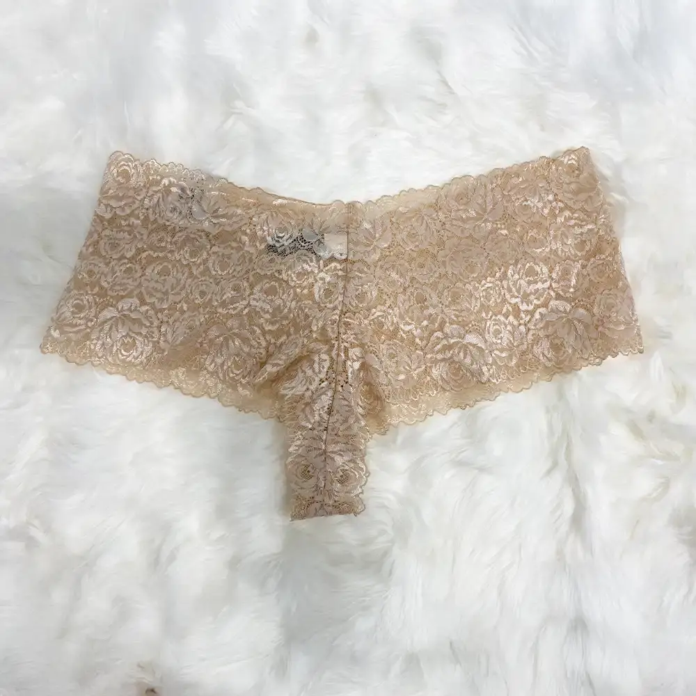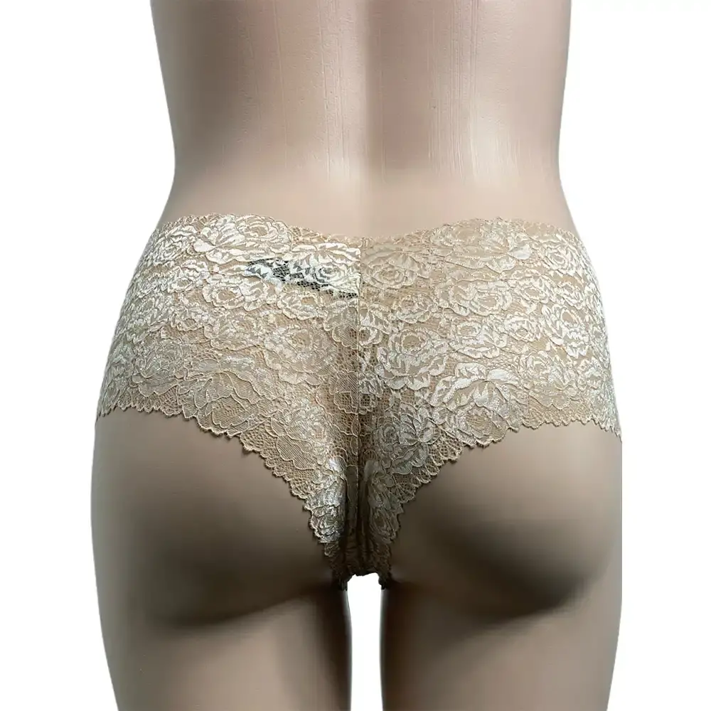 Simple, comfortable lace panties that look feminine without being complicated. The all over lace pattern in champagne gives it a soft, pretty look. The stretch fabric (80% nylon, 20% spandex) moves with you and stays in place. Perfect for everyday wear under any outfit.