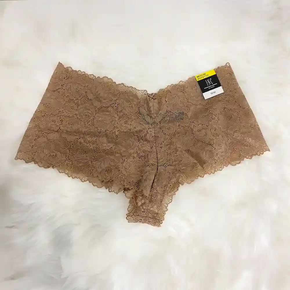 Discover comfort and style with this INC Intimates taupe boy short. The entire garment is crafted from delicate floral lace, offering a feminine and elegant look while maintaining everyday practicality. The boy short silhouette provides fuller coverage than briefs while still offering a smooth, flattering fit. The soft taupe dream color complements all skin tones beautifully. The nylon and rayon blend creates a stretchy, breathable fabric that feels wonderful against your skin. This is a reliable piece that works perfectly in your everyday intimate apparel rotation. The lace texture adds just the right amount of sophistication to basic underwear. New with the original tag still attached.