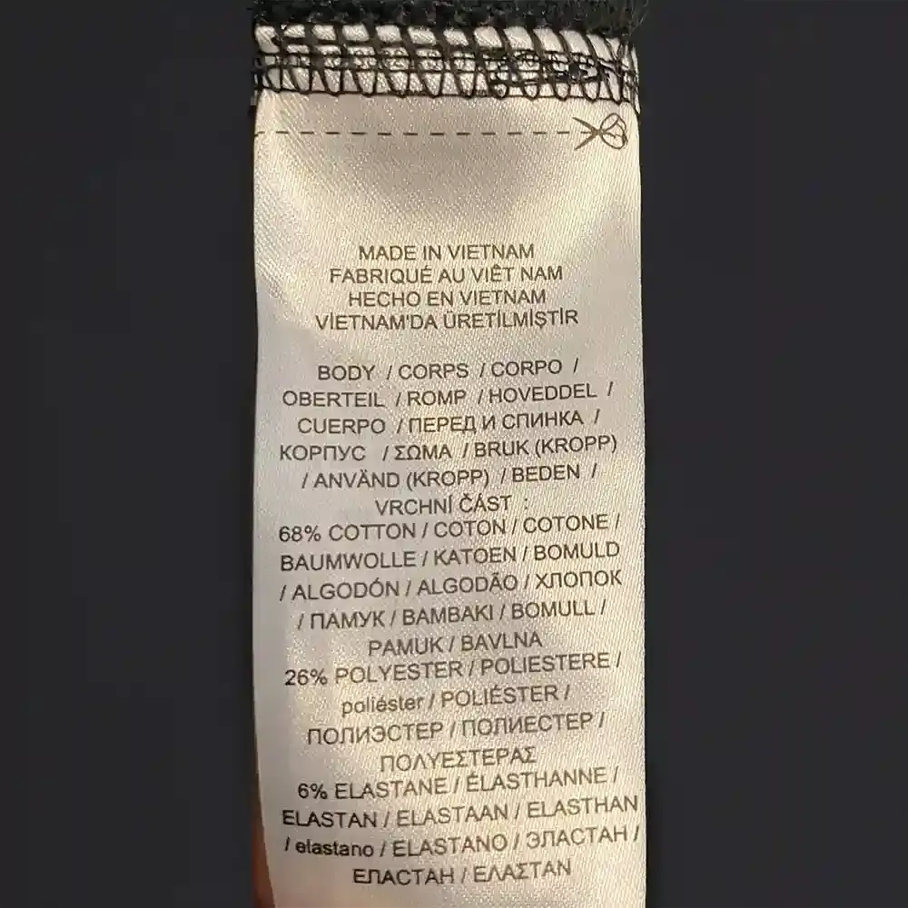 - Fabric: 68% cotton, 26% polyester, 6% elastane