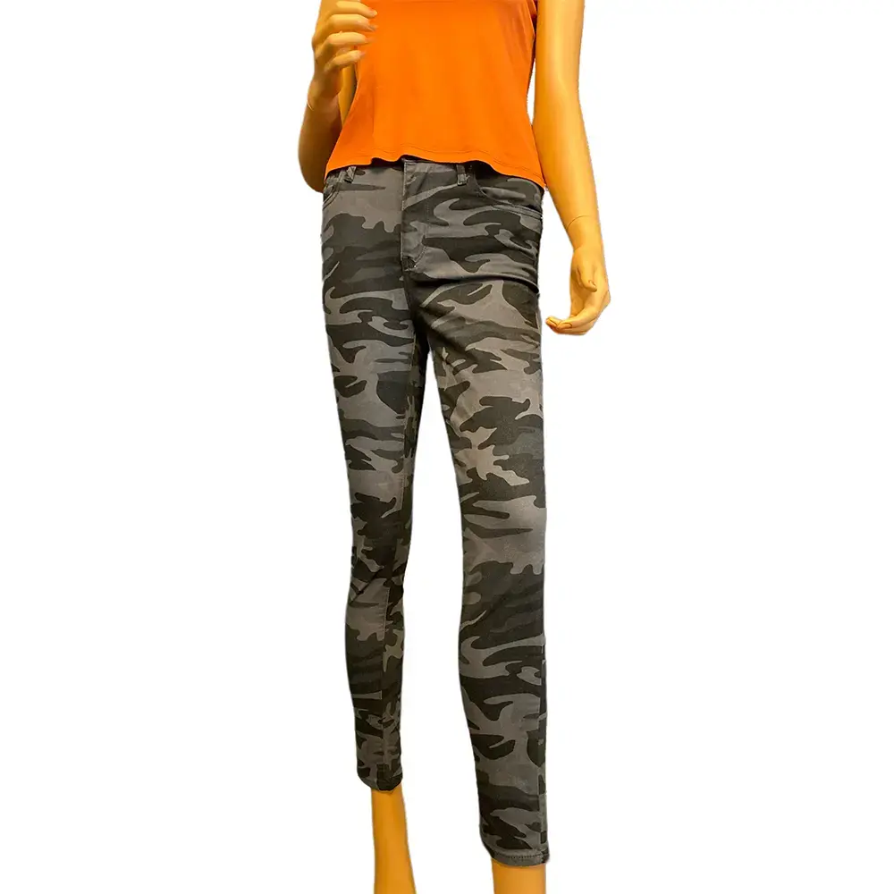 Levi's 721 high rise skinny jeans in a bold gray and black camouflage print. Raw hem at the ankles adds trendy detail to this classic silhouette. Brand new with tags.