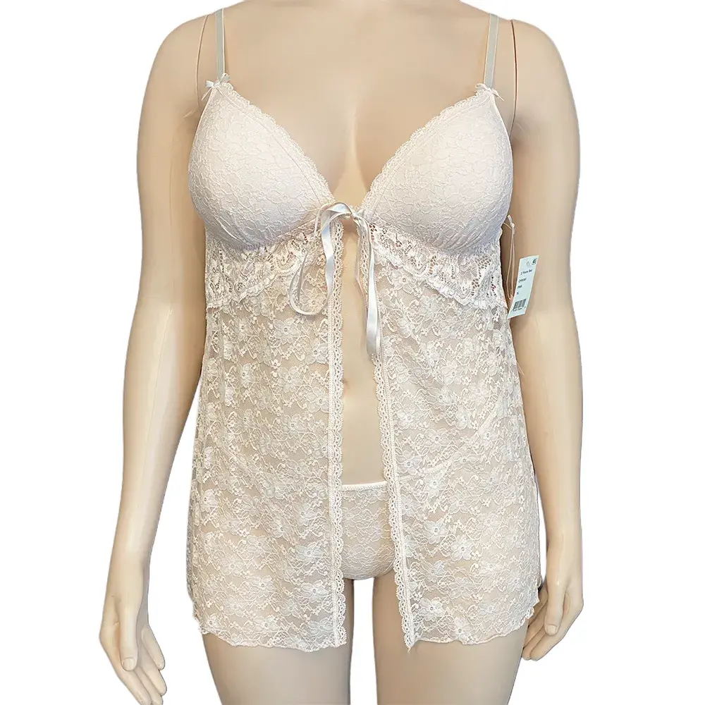 This Linea Donatella babydoll brings romantic, delicate style without trying too hard. The sheer stretch lace has a soft floral pattern that feels feminine and light, while the molded cups give you shape and coverage where it counts. The front ribbon tie adds a sweet detail, and the adjustable straps mean you can get the fit just right.