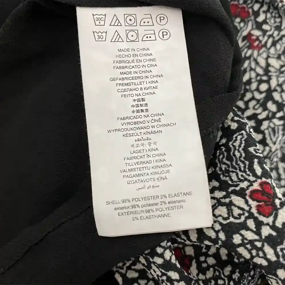 - Fabric: 98% Polyester, 2% Elastane (crepe)