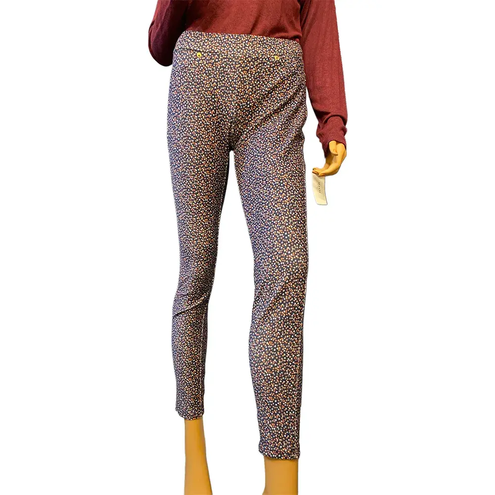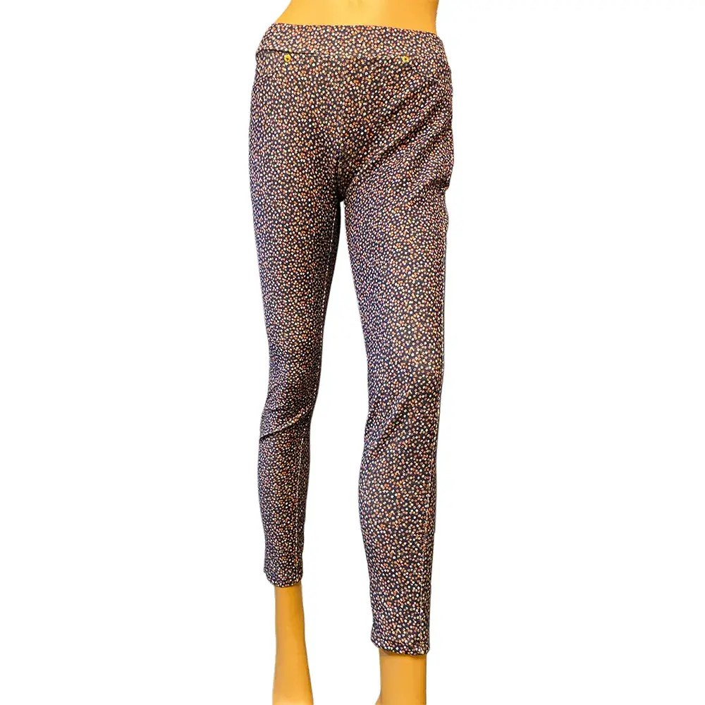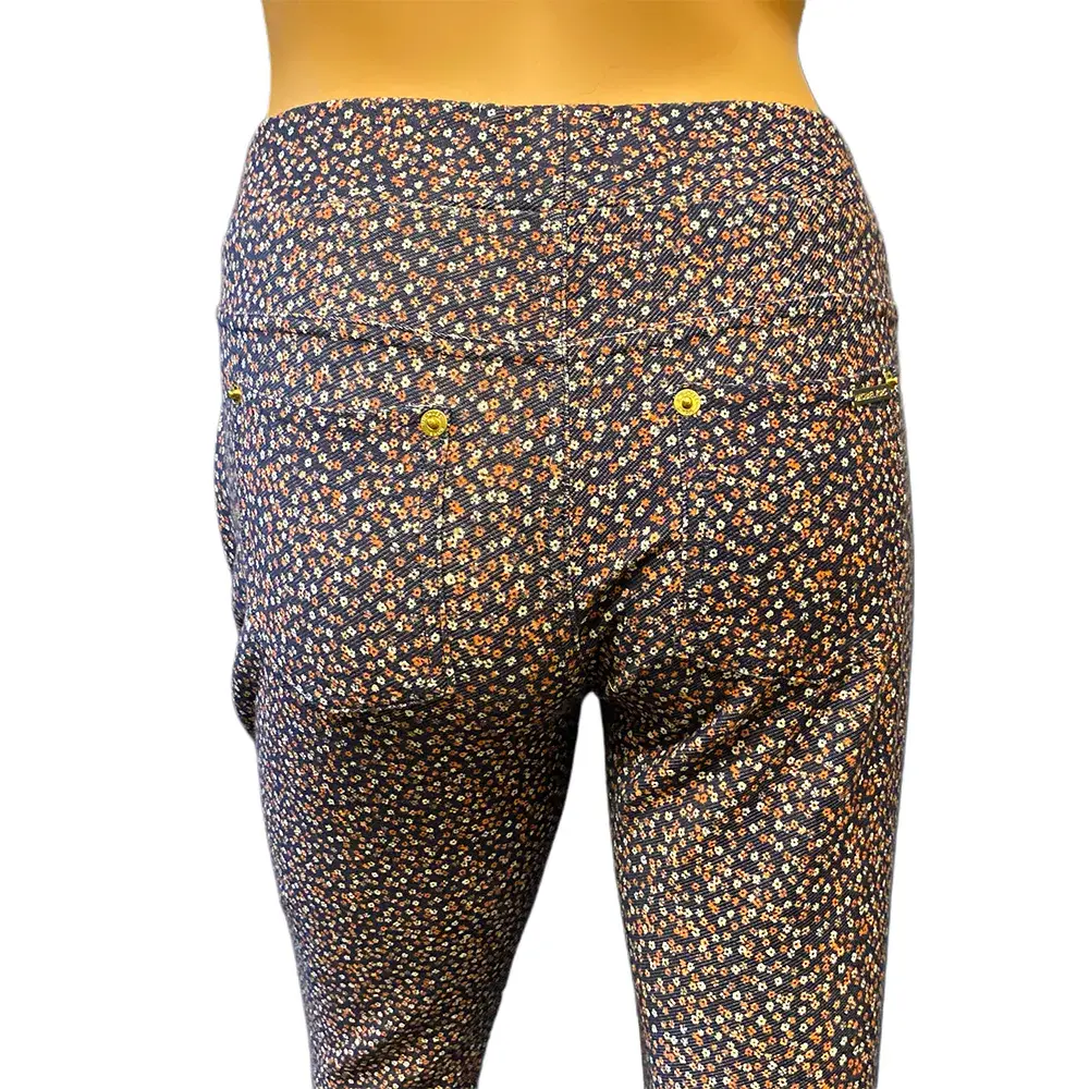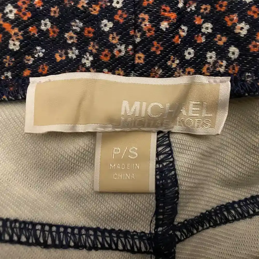 These Michael Kors pants bring designer elegance to everyday dressing. The sophisticated ditsy floral print features tiny blooms in vibrant coral and soft cream scattered across a rich navy background, creating a feminine yet refined look. Skinny fit silhouette skims smoothly from hip to ankle for a sleek, streamlined appearance. Cotton blend fabric with stretch offers comfortable movement while maintaining its polished shape. The versatile navy base makes these pants incredibly easy to style with everything from solid colored tops to classic stripes. Elastic waistband ensures comfortable all day wear without compromising the tailored look. Perfect for spring and summer dressed down with sandals and a simple tee or elevated with heels and a silk blouse for dinner plans. The petite length hits at just the right spot for flattering proportions. Pre-owned in great condition with no visible flaws or wear.