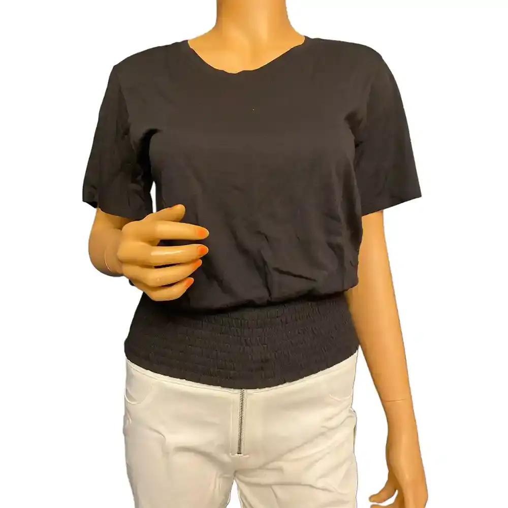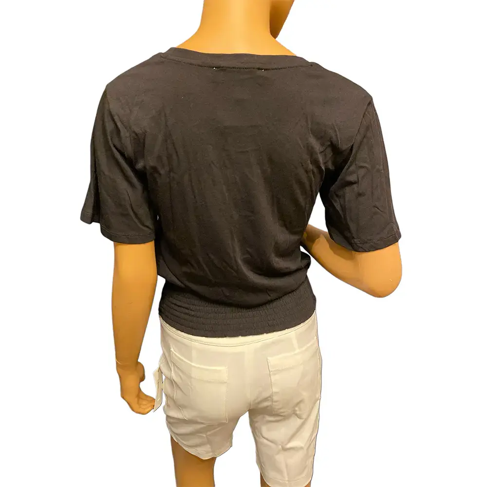 This Michael Michael Kors top elevates your casual basics with a trendy smocked hem detail. The shirred waistband creates a flattering blouson effect while the soft cotton modal blend keeps you comfortable. Round neckline and short sleeves for easy everyday style. Relaxed through the body and fitted at the hip. Pairs perfectly with jeans, leggings, or high waisted pants. New with tags, never worn.