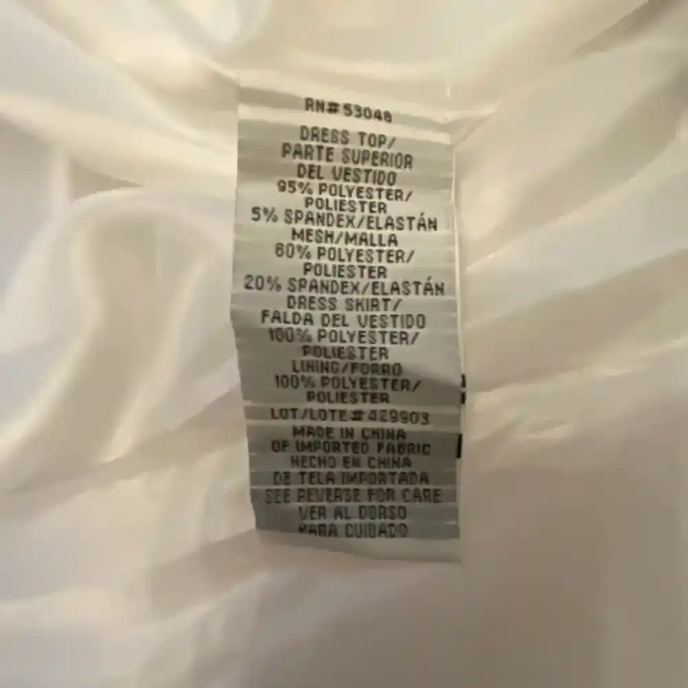- Fabric – Dress Top: 95% Polyester, 5% Spandex