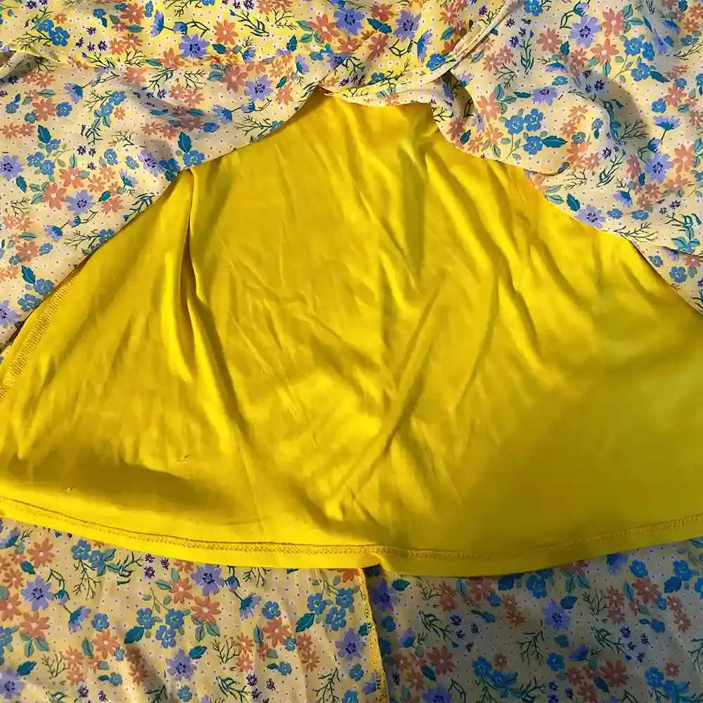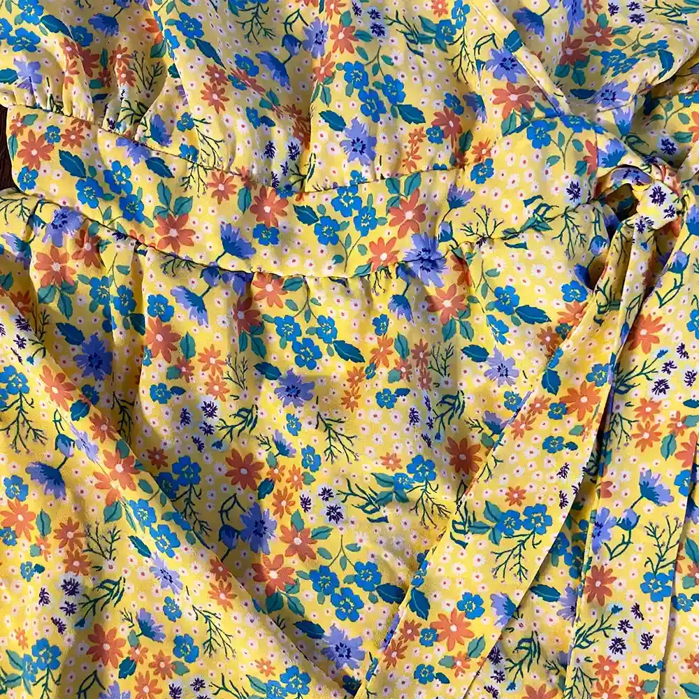 - Color: Yellow with multicolor floral print