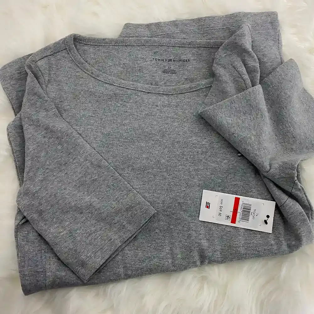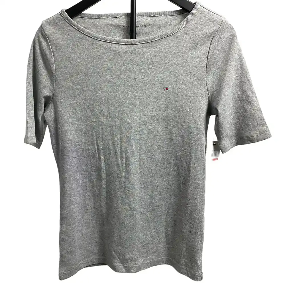 This Tommy Hilfiger tee gives you that relaxed, effortless look that works for just about anything. The gray is a nice neutral that pairs well with denim or casual pants. The boat neck sits wider on the shoulders for a slightly more polished look than a basic crewneck, and the elbow-length sleeves hit right at that in-between spot that works across seasons.